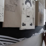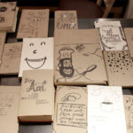 Als 3D-Element dient eine bemalte Holzplatte mit über 30 verschiedenen darauf angebrachten Büchern. Jedes Buchcover wurde in liebevoller Handarbeit einzeln passend zum Thema mit Papier und Stift neu benannt.