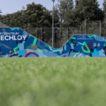Passend zum neuen grünen Kunstrasenplatz auf dem Gelände der Sportanlagen in Wechloy wurden wir damit beauftragt eine angrenzende Wand energiegeladen und modern zu gestalten. Dazu mischten wir Retro-Musterelemente, satte Farbkontraste und zeitlose Silhouetten der verschiedenen angebotenen Sportaktivitäten umzu.